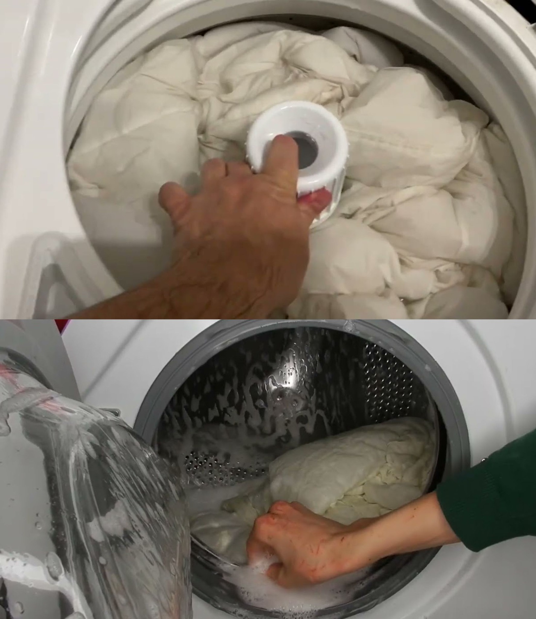 Der undenkbare Trick, um die Bettdecke problemlos in die Waschmaschine zu schieben.