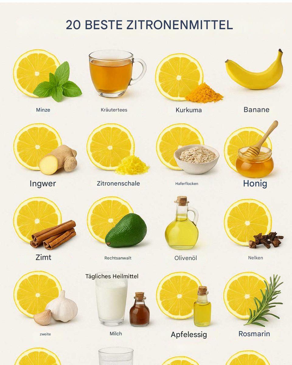 In diesem Artikel stellen wir Ihnen 20 der besten Zitronenmittel vor, die sich die Kraft dieser Zitrusfrucht zunutze machen. Egal, ob Sie Ihre Haut verbessern, Ihr Immunsystem stärken oder einfach nur Ihr Zuhause erfrischen möchten, diese Lösungen auf Zitronenbasis bieten natürliche und wirksame Alternativen zu kommerziellen Produkten. Finden Sie heraus, wie Sie das Beste aus Zitronen in Ihrem täglichen Leben herausholen können.