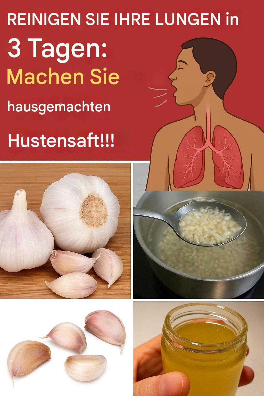 Probieren Sie diesen selbstgemachten Knoblauch-Hustensaft und erleben Sie seine unglaubliche Wirkung selbst. Er ist ein natürliches Heilmittel, das Husten lindert und die Lungengesundheit fördert. Schonen Sie Ihre Atemwege und steigern Sie Ihr Wohlbefinden mit diesem einfach herzustellenden Sirup.