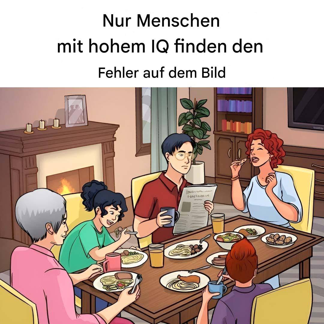 Dieses Bild, das ein Familienessen zeigt, enthält einen offensichtlichen Fehler. Können Sie es erkennen? Testen Sie Ihre Beobachtungsgabe mit diesem visuellen Puzzle. Achtung, Sie haben nur 10 Sekunden!